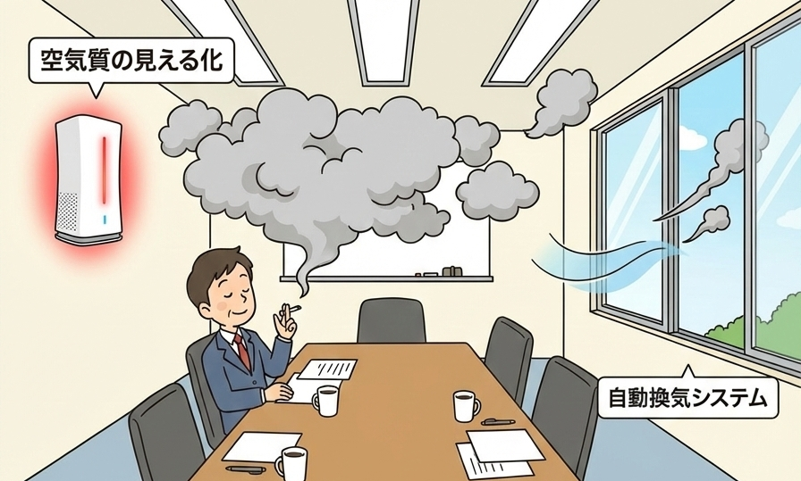 センサー稼働し空気汚染濃度が高いときだけ自動で窓が開くシステム